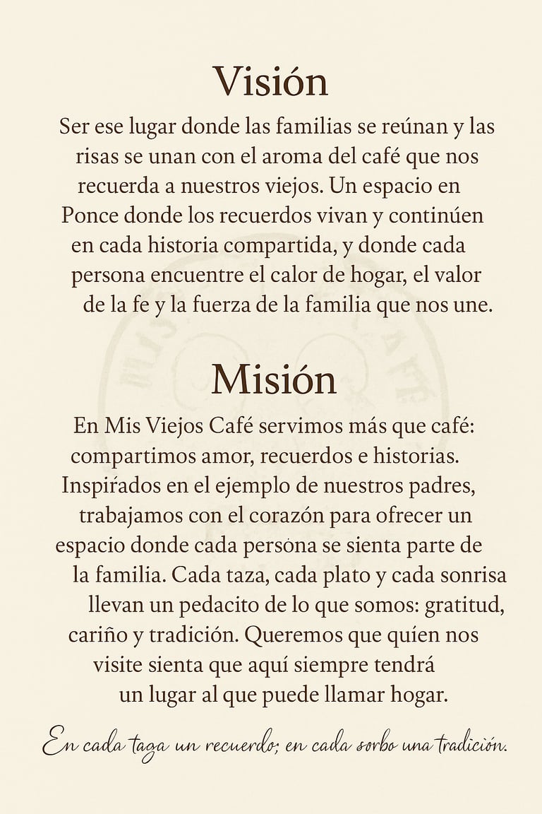 "Mis Viejos Café" es más que un sueño... Es fe, amor y gratitud convertidos en realidad.
